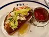 Really cute inside. Connected to the Ralph Lauren store. Great for lunch or dinner. Burger and fries were great. Lobster roll was okay