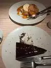 My husband and I sat in the dining room for dinner, with a great view of the patio, the river, and the buildings across the river. Our server was very attentive and knowledgeable about the menu items. I had the wild Alaskan halibut with capers and brown butter, which was cooked very nicely and melted in my mouth. My husband had the seared tuna, which he loved. He ordered the sweet corn as a side, which I tried, but I was not a fan of the seasoning (nor was he, actually). We were given a complimentary dessert (for our anniversary), which was a small chocolate dessert that was rich and delicious.