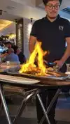 Venue continues to be a hot spot and thus very busy and loud. Hostess led us to table that was still occupied. Waited another 10 mins to be seated 30 mins past reservation time. Not a great start but food and service were very good. Bass, crab and mixed grill all delicious. Mixed grill comes flambé at table. Wine selection good. Server was attentive amidst busyness. It was also pretty loud, difficult to hold a conversation at times. It improved as it got later. Overall food and company made for an enjoyable evening. Won’t rush to return.