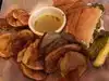 The place is small, but has lots of character. Wood everywhere, a traditional (extensive) salad bar (with soups and great add on items - namely the sweetened chocolate chip cream cheese). The shaved roast beef sandwich with au jus is a buy - it is served on garlic bread! All reasonably priced. Great atmosphere with standard 70's music playing constantly and 70's photos adorning the wall space.