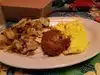We stopped here for a quick brunch on the way to the airport. We were seated immediately in the covered patio area and the servers were friendly and professional. The decorations are kind of funky, but fun. The seating is OK, but not lavish or fancy. I had their Peachtree Morning: Three eggs, any style, with bacon, ham or veggie sausage. I like the eggs over-easy with ham and it was just fine. Others in my group ordered French Toast. The portions were large and the food tasted fresh and good. It’s a decent breakfast, brunch or lunch choice. I didn’t see a dinner menu, so I can’t comment on that. Their prices are not bad either. I recommend it.