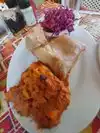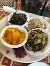 Wow! The wings were AMAZING. HUGE HUGE WINGS. Like a mini chicken. People were staring as I licked the sauce off my fingers...so very tasty! Had the soup which I loved as well. Nice starter. My fiancee got a veg platter as he wanted something healthy. The potato side, sweet potatos, and green beans were to die for. Cucumber salad...meh. Our waiter seemed very overwhelmed and rushed us to order. That was not so wonderful, but our food came out quick. Overall nice experience and would go back.