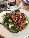 Very eclectic/hippielike/parrothead vibe. Simple interior, nothing fancy, comfortable…the menu is ridiculously awesome…Vegan, vegetarian or if you like carne' you can have that too. Wheatgrass shots, delicious smoothies and fresh brewed teas. Great ingredients and the service was really good too. No complaints here and I'm making this my hangout place for awhile because I have to try more of the menu. I had peanut butter pie for desert…Yummo. And then there's the tropical birds before you walk in. They're beautiful and they like attention so you can have fun with them and they play along. Only thing neg I can say is the parking is tricky finding your way in and out.
