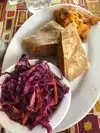 A diverse menu with something for almost everyone, whether vegetarians or omnivores. I had the breakfast quesadilla, loaded with eggs and accented with bacon & veggies. It was huge—leftovers! My vegan friend had several questions about her order. The server was patient and helpful, explaining the menu items and suggesting alternatives. Great attitude! The decor is inviting, something colorful at every turn. My one disappointment is the health rating, which was a B. I don’t normally frequent restaurants rated lower than an A. I didn’t read the (posted by law) report, so don’t know what earned a B, but I challenge management to strive for an A. Then I’d give them 5 stars.