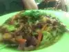 This place is a cross between a tropical and hippie paradise. The food was very good, but the cool and inviting scene is really the draw. The inside is covered by far out green canopy slung over all the tables, which keeps the patrons cools, even at 90 degrees outside. The service was very good and the portions plentiful. You can order meat but this place is also setup for the vegetarians/vegans in your life. Check it out, man!
