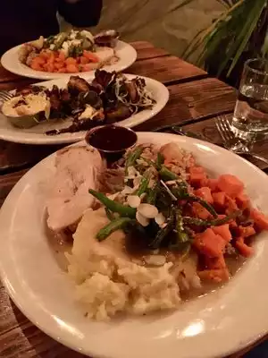 This is located across the street from Caravan, our lodging for two nights. It was easy to walk across the street and enjoy drinks and a meal off of the Happy Hour menu. We shared a burger, roasted brussel sprouts and a green salad. All tasty and we had plenty to eat. We sat in the room with the bar, however, had it not been raining and cold, we might have tried the covered patio with the fire pit. After our meal, we simply walked across the street to our lodging. Note: If you are staying at Caravan, you can use the Radio Room's "room service" and have your food delivered to your tiny house.