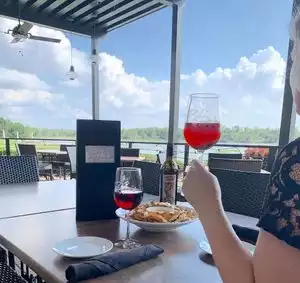 My husband and I stopped by Raffa’s Waterfront Grill during a quiet afternoon, drawn in by the scenic lakeside setting. We must've visited during downtime, as the place was nearly empty so we pretty much had the entire place to ourselves—giving us our pick of seats with a great view. We started with the Salt & Pepper Calamari, Crab Cakes, a Lemon Drop Martini, and a pour of bourbon. Unfortunately, the cocktail experience was underwhelming. While the bartender/server was friendly, she didn’t seem very familiar with the drink menu, and when we asked if they could make a bourbon-based cocktail, the response was hesitant. We settled on the Lemon Drop, which wasn’t terrible, but lacked balance and didn’t stand out. She also wasn’t very detail-oriented as she accidentally spilled some of my drink on me and either didn’t notice or chose to ignore it. As for the food, the calamari was disappointing. It arrived without lemon (which we had to request), and the flavor was lacking. I ended up relying heavily on the jalapeño ranch just to enjoy it, which isn’t something I usually need to do at a seafood restaurant. On the brighter side, the crab cakes were a pleasant surprise—crispy on the outside, soft and flavorful inside. Easily the best item we tried. Because the appetizer experience didn’t leave us confident in the kitchen, we chose to skip entrées altogether. When something as simple as calamari misses the mark at a waterfront seafood restaurant—especially at this price point—it’s hard to justify going further. The location is lovely and would make a great setting for drinks with friends, but overall, the experience didn’t meet expectations for a seafood-forward restaurant. If you do stop by, I’d say skip the calamari and go for the crab cakes.