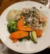 My date and I weren't that hungry so we decided to split a salad and an entree. The Salmon salad (Insalata Al Salmone) was terrific and even a 1/2 portion each was plenty. Our shared entree - Pollo Alla Zia Teresa (Chicken breast sauteed in sherry wine, mushrooms, shrimp & herbs) - was done just right and included veggies and potatoes. Included was roasted peppers served when we were seated, minestrone soup, bread, and complimentary spumoni was offered. All for an amazing price. Service was attentive and friendly.