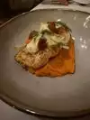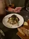 Cool building and cozy atmosphere. Staff was not very attentive nor friendly including Hostess and server. We heard another server near our table that was very friendly. We just weren't lucky. Food: We had the trout and shrimp risotto entree's. The trout had an oily film on top of it that lingered in your mouth for a few minutes. We're not sure what it was. The trout was cooked well and had a decent flavor outside of the film. The risotto was hardly cooked and crunchy. The mix of safron and pesto(menu identified as salsa verde) was odd and lacked any really creative flavor.