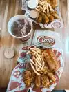 After months and months of being excited to visit New York and telling people I can't wait to visit Raising Cane's I was so disappointed with the food. Chicken was soooo greasy The chips were soggy and had no taste. And the sauce was bland... Chic fil A Sauce is much, much better . It's 100% over-hyped!! Top much going on. Blasting music, pretty much sitting on top of each other. And very instagrammable Not for me!!!