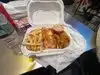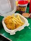 Generous and delicious food 1 portion of 6 pieces of chicken and fries serves 2 people easily! Very crowded place with DJ playing