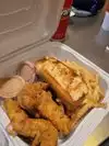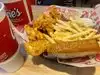 We went in here because my partner has always wanted to try it with not having the chain at home. The service was super fast which is great and staff very friendly! We had some chicken tenders/strips and chips. The chicken was delicious but I was shocked at how salty the fries were. Maybe cut down on the salt or give the option to let the customers salt their own food? But I did enjoy it so thank you!