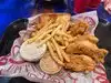 Noisy, packed, expensive. Absolute bedlam in here, the music was excruciating loud. Believe there was a “DJ” on but he never spoke on the mic so might as well just play a CD and save the money. Food was ok, basically chicken fingers with other things - bread, hot dog rolls, whatever but it’s all chicken fingers. It’s a “Tik Tok” place. Supposedly you are “cool” if you eat here and put the pictures on Instagram. Whatever.