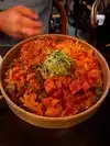 My Sister-in-law lives in the neighborhood and frequents this place, otherwise I doubt we could have stumbled upon it by ourselves. It's colorful, with friendly and efficient staff; a vast dinner menu and a helpfully reduced lunch menu. I confess my knowledge of Ethiopian cuisine is limited and I could easily get lost in the dinner menu. Our server helpfully suggested selecting one of four themed sampler bowls from the lunch menu, making decisions easier. At around $16 per I assumed I would likely need more than the one bowl - but I was wrong. A lovely earthenware bowl amply filled with four delectable flavors was more than enough to satisfy my midday appetite. If I lived anywhere near Brooklyn, this spot would be in my regular rotation - delicious!