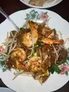 I ordered the clear broth noodles. I came not with noodles but vermicelli, and with bland pieces of chicken that tasted like stiff cardboard. The broth tasted worst than canned chicken stock. I wouldn't pay even a cent of this tripe. Very disappointing. My lunch companion had the mee goreng with seemed to be better. If the clear broth "noodles" is so disgusting, why put it on the menu?