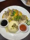 Malaysian spot with tasty, authentic options. Anthony Bourdain had been here before for the Sarawak laksa, and that’s exactly what I got. The broth was nuanced and immensely flavorful. Note that it does have shrimp. It was so good that even when my dad had some soup go down the wrong pipe, he still kept eating the soup in between coughing. The Malaysian combo came with 2 of each item - chicken satay, murtabak (these little potato pastry things), and curry puff pastries (note there’s meat inside). My mom got the Nasi Kerabu with fried chicken and loved it. It came with blue rice, which was pretty cool, and the chicken was well done - lightly crispy on the outside, juicy on the inside. The mango smoothie was a bit icy but I liked how they added a bit of whipped cream and strawberries on top. Credit cards are accepted. Indoor and outdoor dining is available. Two gender neutral bathrooms are available in the back. They do have alcohol; the Mekong whiskey was earthy and my dad enjoyed his neat. It’s good for big groups as well as one-on-one hangouts, and they do have takeout. Overall, highly recommend grabbing food at this place whenever you’re craving something flavorful.