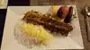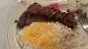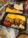 Ordered in. One lamb kabob. One chicken kabob, but with that special rice with berries (for $3 extra per dish). It came with a small plain salad and Persian bread. Nice sized portion with grilled tomato and onion. Disappointed in the dried out lamb and the dried out chicken. Also there was little or no char or taste. The rice was good, but not my style. The bread was tasteless. Well, we gave it a try.