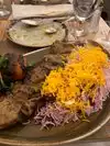 We had the Khoresh Bademjan (lamb stew w/ tomato and eggplant) and Chicken Koobideh Kebob! The rice was real good and the sauces they give as appetizers with pita bread as starters were so good we kept asking for more of the sauce which they did! For the price paid, I thought it had great value with the atmosphere and the tasty dishes.