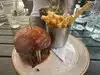 Best burger I’ve had in a long time! It was perfectly cooked and the fries that came with it were also delicious. Loved their seasonal cocktail menu, it was so fun to try the festive wintery drinks! Our server was super kind and checked on us regularly. My friend had the bolognese and said it was amazing! We also ordered breakfast from here via in room dining and everything was so delicious. I highly recommend the eggs benedict and waffles!