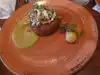 Make sure you have a reservation as we showed up at our appointed time and there were people waiting for a table. We basically sat right down to the "looks" of them.... Even though it was a Monday night, the place was packed and loud...the music was great. My partner and I both started out with the green salad that was really quite good with raisins, pumpkin seeds etc...nothing spectacular but good. The other starters looked good and savory but not in the mood for them. We did share the cornbread with butter. I had the lamb shank with lamb sausage over rice with two different sauces...one hot and the other was mild although nondescript. The lamb was very good....really good. The lamb sausage was a bit spicy and flavorful. Not sure how to describe the rice with beans other than mildly spicy and really complimented the lamb. My partner, had the salmon with a citrus type compote on it....he loved it! I was glad to see him take his time eating as he usually eats too fast and complains there isn't more. This time, he ate slower and enjoyed the meal.... OH,,we had donut holes with sweet potato filling and ice cream....OMG!! Maybe the service was even better than the food as they were great....really great. They obviously were well trained and they seemed to really enjoy serving there. I'm sure it is quite profitable for them with great food and music and being packed with customers. I would definitely go back....