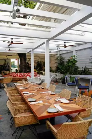 Great vibe + great food = great time! Loved this new place in Overtown! The decor is beautiful with a throw back to 1950's Florida vibe with a modern feel. They have a great and large outdoor terrace and bar that is very accommodating. Their cocktails are delicious, I recommend the "Yes Chef". Food was very unique and yummy. I recommend the tuna poke with a coffee ponzu sauce, the crab and corn fritters, the fried chicken as well as the table-side flambé of the Rooster Royale. The Mac and cheese side was also spot-on. The sundae dessert just completed our meal...I think it had everything but the kitchen sink. Definitely a must try. Last but not least, service was really fantastic. Our server was well versed in the menu and had great recommendations.