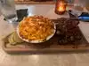 Uncomfortable seats. Small table for 4. No ravioli as ordered. Mac and cheese only other acceptable choice…. Son ordered ribs which did not have much meat with unappetizing sauce, served with a smashed pile of some kind of potato salad and a few sliced pickles. Spices over whelm food. The DJ had the sound up so loud we could not converse. Not a good neighborhood. Not a pleasant experience.