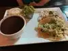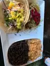 We both got the 2 taco plate with rice and beans. I had the Saracha (sp? honey shrimp, and the Korean BBQ ribs. Beans and rice were non-descript. I thought I would like the shrimp better, but the Korean BBQ ribs - that is the ticket! Also had the $6 slushy margarita. All pretty good stuff. Pretty crowded on a Sat night, so we had to wait about 5 to 10 for a table. Go - I don' think you will be disappointed.