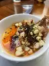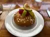 The avocado salad was the most indulgent salad I have had. Creamy dressing, chunks of blue cheese and pickled onions. They also seemed to salt and pepper the avocado which was a nice touch. Very unhealthy but delicious salad. Huge portion too. I have only ever boar twice and it does not disappoint. Tender and flavorful especially with the mustard jus. For desert I got the POG cream puff. Very fruity but more of a donut like texture would probably skip next time. Service towards the end was lacking as it took a while to get bill. Otherwise great experience.