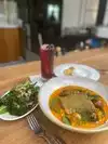 We were greeted with a smile and truly pleasant people. We were seated quickly and the server gave us some great reccomdations on our meal choices. Then… we were kinda forgot about. The server never came back to check until we were basically done with the meal. Add to this that an iced tea was $6.00 and had -leterally six swallows of tea AND was not refillable. Really? Then I go the bill and 5% was added for their employee health and welfare. What? So the food was excellent and the service was ok. But $84 for two small meals and tea was simply not worth it. Hard to imagine we will be going back.
