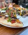 Arrived before lunch as we were without a reservation as the website would not allow small party bookings. Front of house was not welcoming at all, she offered a table inside and I understood and asked if we could be moved outside if a table became available after we sat down. Once we were sat, the food that came was delicious, but be aware that the appetiser houmous is definitely a sharing portion. The grilled corn flat bread pizza was beautiful.