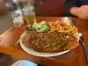 Horrible horrible horrible. If I could give it a zero, I would. Horrible is the best word to describe this overall experience!! The drinks were good but how can you mess up beer on tap? Rushed to place a food order “we’re very busy”. The food was horrible. The entire meal was cold. Server did not bring the right food. When pointed it out, returned with same place with mushrooms sauce. Needless to say, meal not eaten. Asked for silverware and the server literally took fork and knife off table beside us and tried to offer it to us. Asked a different server for silverware, she brings us fork and knife. No napkin. Not wrapped. Again pointed out sanitation rules, again told “we’re busy.” Had to ask for napkins again. Needless to say the meal was not eaten. This is the nastiest meal I have ever been served. Horrible. Will never come again and will NEVER recommend this place either. H O R R I B L R!!