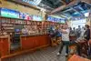 This hall is similar to a Bavarian Beer Hall with large wooden tables. You get more than 10 classes of draft beer from Bavaria and from other parts of Germany. They serve Bavarian fare too, like pork knuckles, sausages, etc. Beer just perfect temperature - refreshing. They should serve some appetizers with the beer, then it would be perfect. Nice girls behind the bar serving nicely the beer. It is noisy...