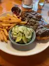 Nice atmosphere and decor, although a little loud for normal volume conversation. The sausages we had for main course were good and what you would expect. But I was really pleased with the meat & cheese platter, which while it only had one cheesy item, it had lots of meats, including ham, pâté, salami, pickles, mustards, and breads. I wasn’t drinking the night I visited, but I would love to go back and try their interesting beer menu.