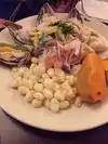 Very small place, I almost walked by it without noticing the entrance but don't! No fancy interior, just great tasting food and kind service. They offer the ceviche courses as spicy as you want them, I had Mixed seafood with mango, spicy - and it was, but the sweet mango balanced the spiciness perfectly. Very good! Had white sangria to drink, also a sweet edge to take the heat off. Want to come back!