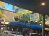 Not a brand new venue, but fairly clean, and kept in shape....tables by the river, nice view until the ducks/birds start to walk under your table and between your feet. Mostly two/three chair tables, including some with umbrellas by the riverside..larger tables seating inside or under the larger canopy of the building. Food was reasonable cost, good portions, but nothing to write home to Mom about. My wife had the taco salad, and it satisfied her hunger....I had the chicken fajitas, same story....nothing really large to complain about.....nothing great to complement about... Service was good/very good.....location is awesome...food came without any great delays.....our only issue was the waterfowl mingling with us....but we are from Upper Michigan.....there are always some form of wildlife trying to engage us at/in/over/under our home... We both give this a try-it/you could do much worse rating, it is a central tourist area, sometimes you have to take what you can get....and sometimes you just need to make it through the day....and this place would work.. Mahalo