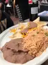 Nachos had little chicken that was rubbery. Soggy chips due to refueled beans and melted cheese everywhere . Margaritas good but not cheap .