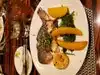 The good was very good We had meat and Sea Bass Very nicely done The side of corn is really good Monday night and it was very full A bit short on staff but it didn’t impact the service Worth coming if you are staying near by