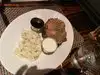 I had some room service after a long plane ride. I ordered a NY Strip that was sauteed with mushrooms, and it was cooked wonderfully with a side of creamy mashed potatoes. It was a great way to unwind and relax after a long day of traveling.