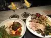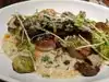 Thoroughly enjoyed the food which was beautifully presented. Our party of 7 ordered a variety of different meals and not one complaint. Every meal was cooked perfectly and as described. Favorites were the scallops and the campanelle pasta and the salads. The food came out reasonably quick. I think the service was a bit slow, but not worth a complaint when you have great atmosphere, great company, and great food.