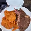 My dinner, rotisserie chicken, was very flavorful. Service was good, it was a very slow Monday, with only a few patrons and the staff packing up at 7. Watch out for the sparkling water, they charge liquor prices for it.