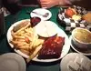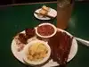 We had ribs and meatloaf, fried green tomates, fries, rice. Portions are generous and very tasty. The complimentary ice tea was another nice surprise! Service was good too. I definitely recommend the place.