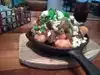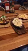Husband loved blueberry mules. Appetizers poutine really tot nachos, will disappoint a poutine fan. Charred pork belly uncharred, needed cooked longer. Husband loved Guinness pie. Fish & chips good. Friends liked their flat steak & the salmon. Waiter a little inattentive. The Food Network star himself was there at the bar and very gracious and friendly.