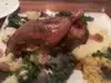 Went there for Valentines dinner and expected it to be packed and was surprised it was not to overly packed. We were seated right away and ordered our food, appetizers were delicious and served promptly however our dinner took 35 minutes so they comped our drinks and when dood arrived it was fantastic I had Spatchcock Chicken and it was cooked perfectly,husband had the Fish and Chips and send they were great