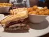 We had lunch here. My husband ordered the pastrami sandwich, I had the Ahi Tuna Sashimi, and we shared the PH Poutine. The poutine is one of the best things we've ever eaten. It has tots, pulled pork, Guiness shitake gravy and goat cheese. I tasted the pastrami and thought it a little dry, but it was okay on the sandwich with the other items. Service was good with very friendly waitress.