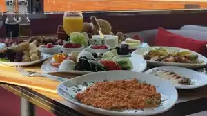 Great place on the waterfront. Awesome deck when the weather permits. Good service with abundant servers. The food comes hot and cooked perfect in style. There are plenty of delicious starters to choose. Stay away from desert plates, instead enjoy the Turkish deserts elsewhere. Beware of water bottles, the small bottles cost $5 each. Ask if you can substitute with tab water!