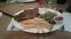 We dined here twice while we were in the area on vacation. First for breakfast and then later for dinner. Breakfast was wonderful and we enjoyed our table outside on the deck overlooking the bay. I had the Eggs Florentine: English muffin topped with poach eggs sauteed, fresh spinach and florentine sauce, served with a side salad. Perfect amount of food and delicious. We had a just as an enjoyable dinner later on and shared the Mixed Grill Platter: Adana kebab, chicken shish, Lamb shish and kofte with bulgur rice. We were able to bring our on bottle of wine to accompany the dinner, which is always a plus!