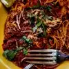 It was one of those places with lots of wall fixtures, including at least one photo featuring disgusting food personality Guy Fieri. I ordered the simplest thing on the menu, spaghetti with tomato and basil. They instead gave me spaghetti with some sleazy marinara-type sauce that acted as a vehicle for them to dump their onions on a less fortunate human, despite not mentioning that ingredient on the menu. I expressed my dismay at this and eventually got back a more standards-compliant implementation of this dish, except the tomatoes were pale, flavorless, and under-cooked.