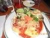 Dinner for 2 on a Saturday night. Nearby where we were staying on honeymoon in the city. Found this place via Yelp & TA. Quirky family feel. Cool jazz playing, great decor, friendly service. Gorgeous garlic infused olive oil served with fresh bread. Salads to start, flavoursome & plentiful. I had one of the signature dishes Prawns with linguine. The prawns were plump, fresh and full of flavour, perfect. My wife had ravioli & meatballs, the portion size defeated her. Washed down with a bottle of Prosecco. Spot on and reasonably priced
