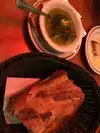 I saw this restaurant on a food show on TV so we decided to try it . The food was nice. I wouldn’t recommend the sliced garlic pork as it was swimming in a watery juice and pretty flavorless. The salad was good and dressing great . Excellent bread and olive oil. The fish was excellent and veggies too. The menu wasn’t extensive and a lot of pasta n burgers.