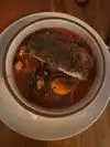 The specialty is the cod. The cod is quite small- crispy on the outside and pure much on the inside. Was expecting it to melt in your mouth on the inside- but instead it was grainy and mushy. Just served in a broth with some greens on top. I’m not a big eater generally. We ordered an appetizer as well and ended up going out to dinner again after!
